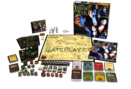 | Drake says: "A Touch of Evil is a fast-paced game of fiendish creatures, dashing Heroes, and high-adventure. Each player takes on the role of a unique monster-hunting Hero, racing against time to stop the forces of darkness from claiming another foothold in the world of man. Only by investigating the town and building your Hero's strength can you hope to hunt down the Supernatural Villain to his Lair and defeat him in an epic Showdown. Players can race Competitively to be the first to defeat the Villain and save the town, or they can work together Cooperatively to defeat a much stronger Villain."