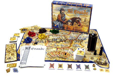 | John says: "El Grande is an extremely interactive game! Be sure to balance your need of Caballeros and the need to play first in order to use the best Action cards for your strategies. Luck is very low in this game and disadvantaged players may easily reduce their gap, keeping everyone in the game until the very last turn. The expansions packed in give this excellent game even more replay value." |